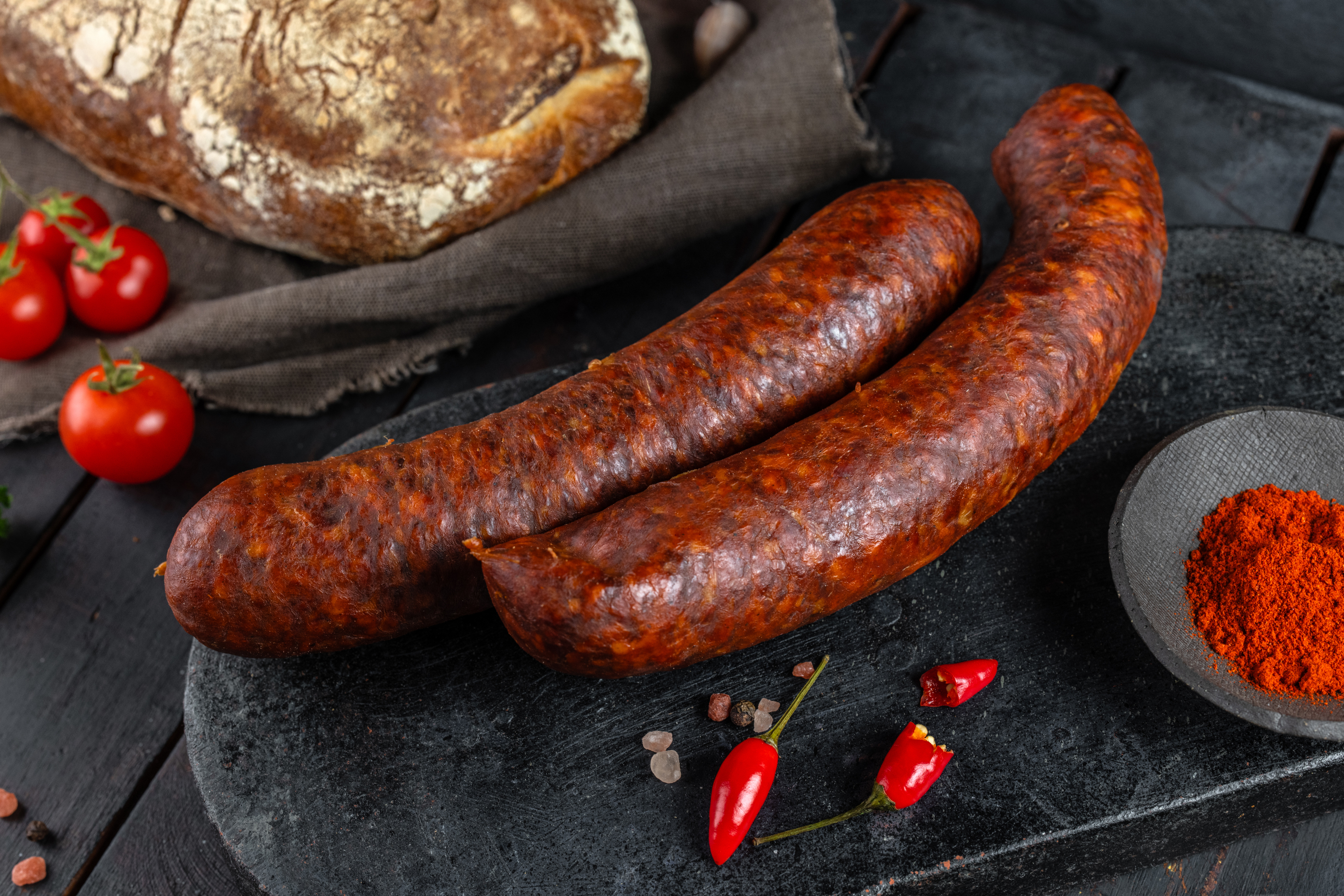 Adalék- és színezékmentes, magas hústartalmú, 100%-ban ellenőrzött magyar húsból előállított termék, színét a kiváló csípős paprika adja.